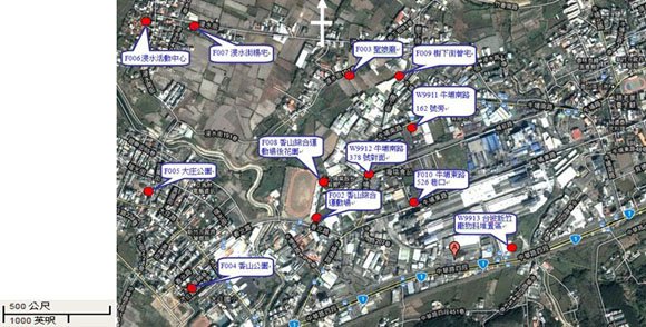 香山工業區場置性監測井位置圖