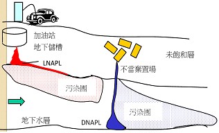 加油站及儲槽可能因儲槽、管線老舊腐蝕失修、地層下陷變動及操作管理不當等原因,致儲槽、管線破裂毀損,造成油品滲漏而導致土壤或地下水污染。![]() |
