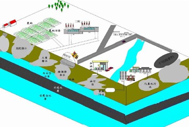 | (一)工業:工業廢水之放流污染、儲槽/管線之洩漏、廢棄物堆放或掩埋、空氣污染落塵、意外洩漏等。 (二)非法棄置場:不肖業者將工業廢棄物非法棄置。 (二)都市:家庭污水、下水道管路及化糞池破損外洩的污水、掩埋場滲出水洩漏等。 (三)農業及畜產養殖業:化學肥料、農藥殘餘物質、改良土壤的藥劑等。 (四)其他:工業及汽機車廢氣、落塵與酸雨、油管破裂、化工廠化學品外洩等。 ![]() |